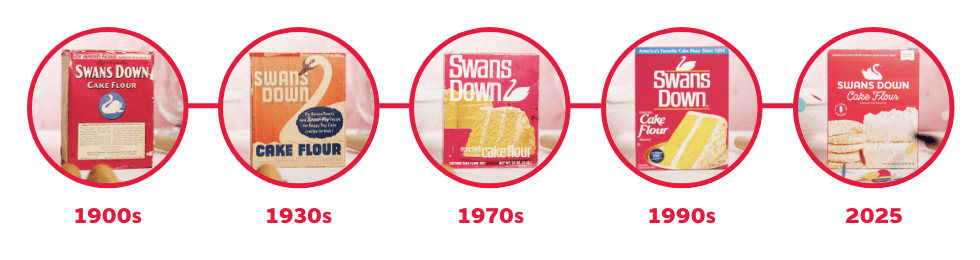 Through the years and with every new version of our packaging, Swans Down Cake Flour has become part of the rhythm of so many lives and family stories – generations of home-baked cakes and cookies for birthdays, weddings, holidays, and rainy Saturday mornings. Today, we’re proud to keep these baking traditions going.